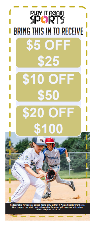 By submitting this form, you are consenting to receive marketing emails, from Play It Again Sports - Cranberry. You can revoke your consent to receive emails at any time by using the Safe Unsubscribe® link, found at the bottom of every email.